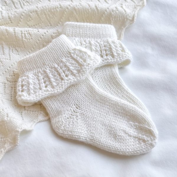 Strikkepakke dåp inneholder mønster og garn til dåpskjole og kyse. Du kan velge blant to dåpskyser i ett og samme mønster, med bølgekant eller picot-kant mot fjeset. Dåpskjolen er basert på vår klassiske dåpskjole med hjertemønster. Den håndstrikkede blir tykkere og har større hjertemønster enn den maskinstrikkede, den har samme søte kanten i halsen og på ermene. Kjolen er myk og behagelig å ha på for barnet. Settet har et lekkert og nostalgisk uttrykk.