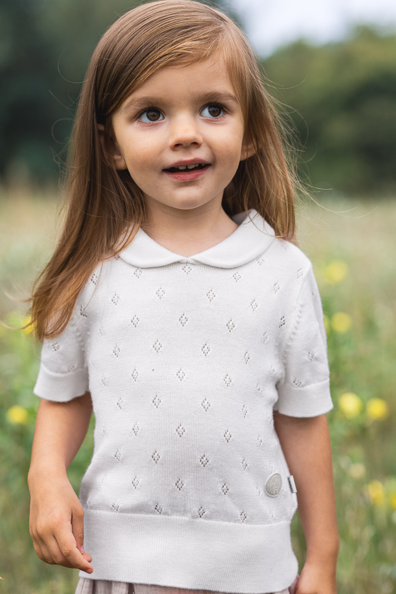 Plagget passer perfekt sammen med Meadow Jacket. Siden strikk har en naturlig fleksibilitet i strukturen, kan plagget brukes over lengre tid etter hvert som barnet vokser.
